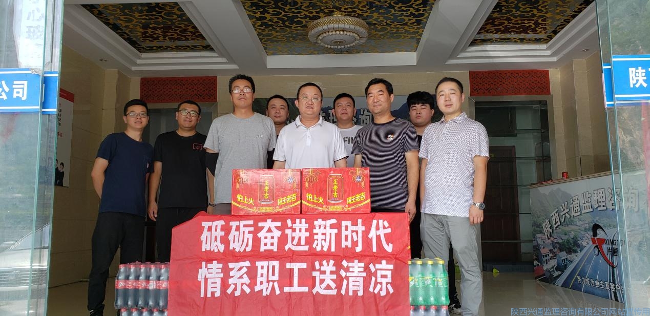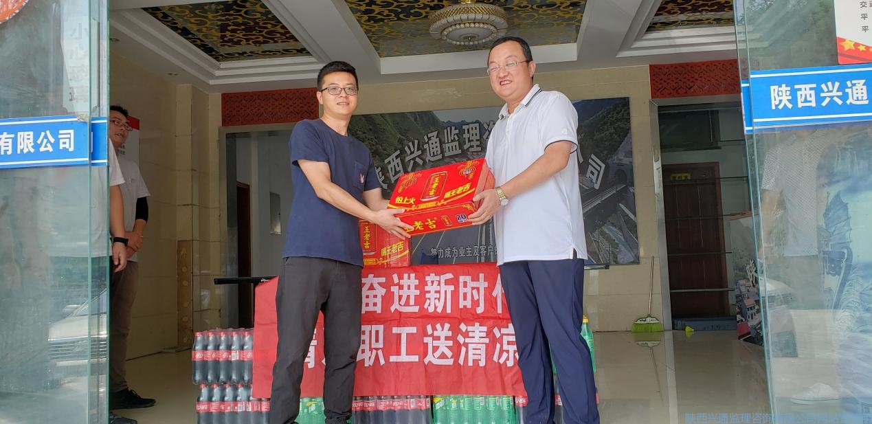 党委书记张兵、副总经理陆鹏在看望同事们的同时,关切指出:进入夏日三伏节气,陕南天气酷热潮湿,大家在做好安全、生产管理等监理工作的同时,应注意防暑降温,保重身体。随后,在欢乐祥和的氛围中,两位领导为项目一线员工逐一送上防暑降温慰问品。