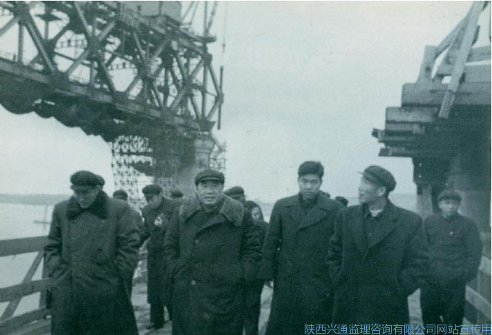 1957年1月8日,朱德在湖北视察建设中的武汉长江大桥。