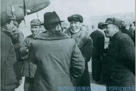1946年2月19日,毛泽东等在延安机场迎接从重庆回延安汇报工作的周恩来。